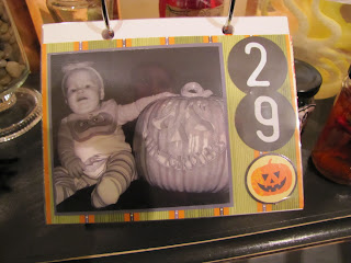I have seen several cute designs for a countdown to Halloween out here in blogland. This is such a GREAT way to display those cute Halloween photos you take every year for everyone to see. A good way to get them out of the albums and out each year for Halloween for you to reminisce and remember. My inspiration came from over at Eighteen 25. They had a guest blogger (Melissa from The Polka Dot Chair)who made this SUPER cute countdown calendar. here for all the details & instructions on how to make it.